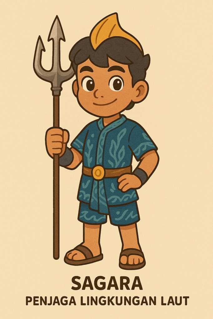 Sagara lahir dari semilir angin pesisir dan suara ombak Nusantara. Ia mampu berbicara dengan hewan laut dan menenangkan badai. Trisulanya memancarkan cahaya ketika laut terancam. Dengan semangat ramah dan kepedulian tinggi, Sagara melindungi terumbu karang, mencegah pencemaran, dan mengajarkan manusia untuk mencintai laut seperti rumahnya sendiri.