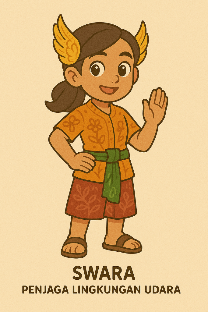 Swara lahir dari tiupan angin lembut di atas pegunungan. Dengan suling anginnya, ia bisa membersihkan kabut polusi dan menyampaikan pesan alam lewat nyanyiannya. Ia bersahabat dengan burung-burung Nusantara dan bisa terbang mengikuti arah angin. Swara mengajarkan pentingnya udara bersih dan langit yang bebas dari asap.